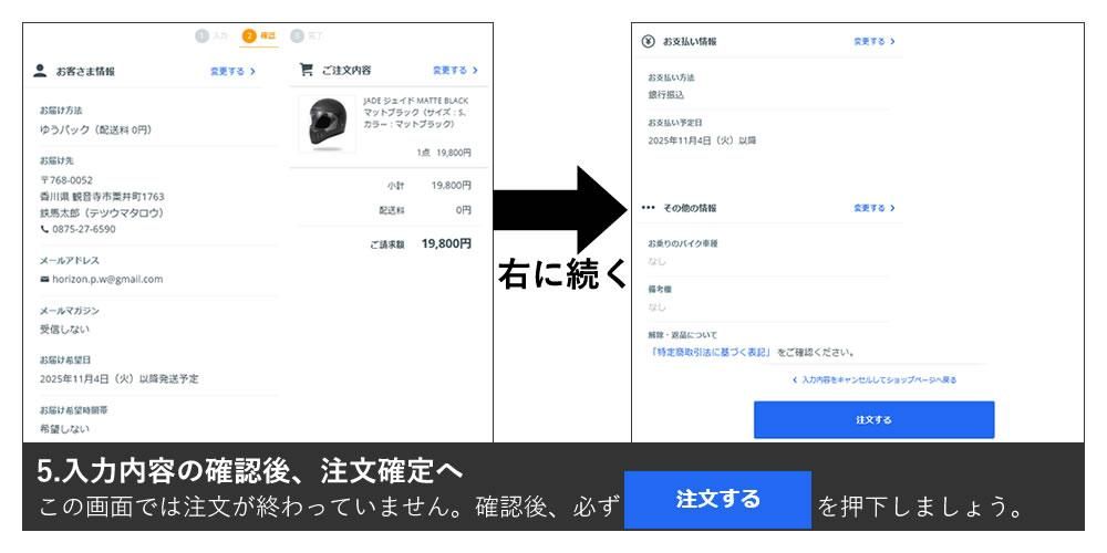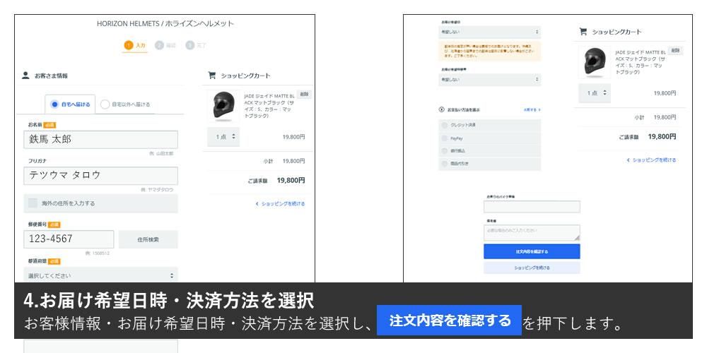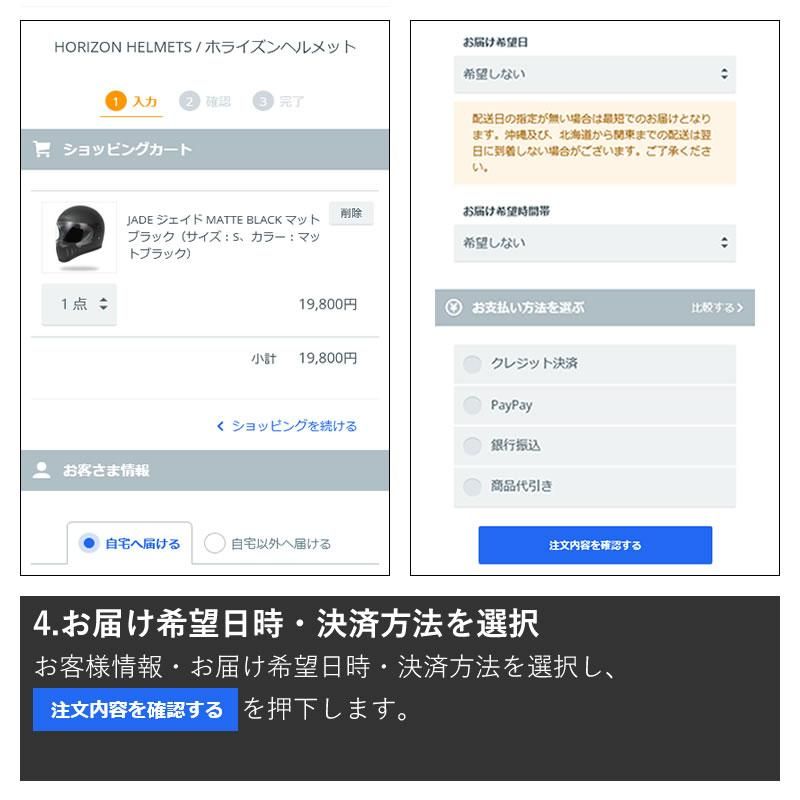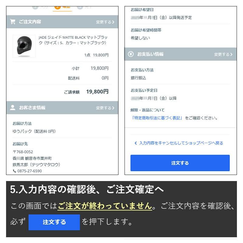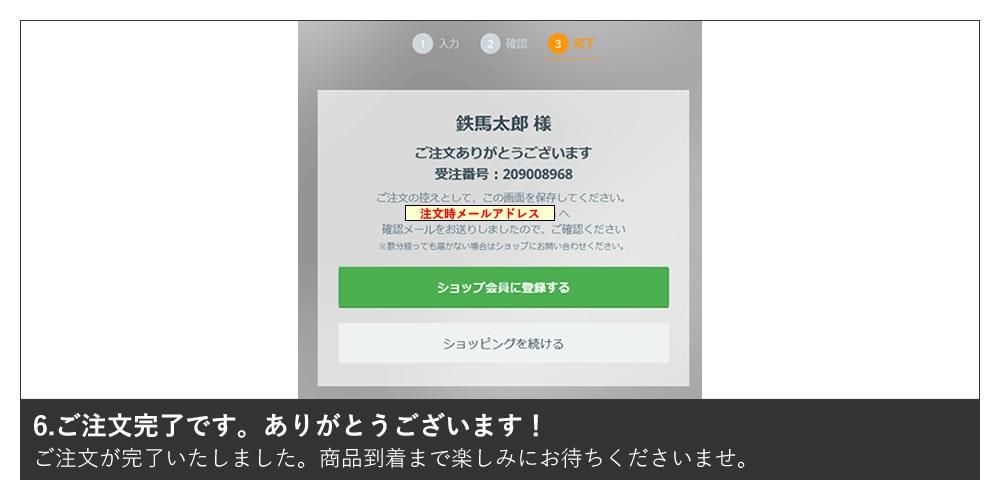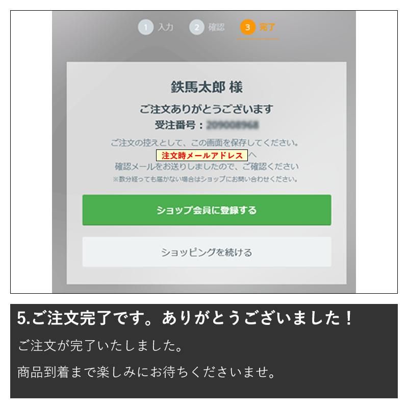 1:ログイン→ 2:カートにいれる→ 3:お届け日時・決済方法を選択→ 4:ご注文内容の確認→ 5:ご注文完了